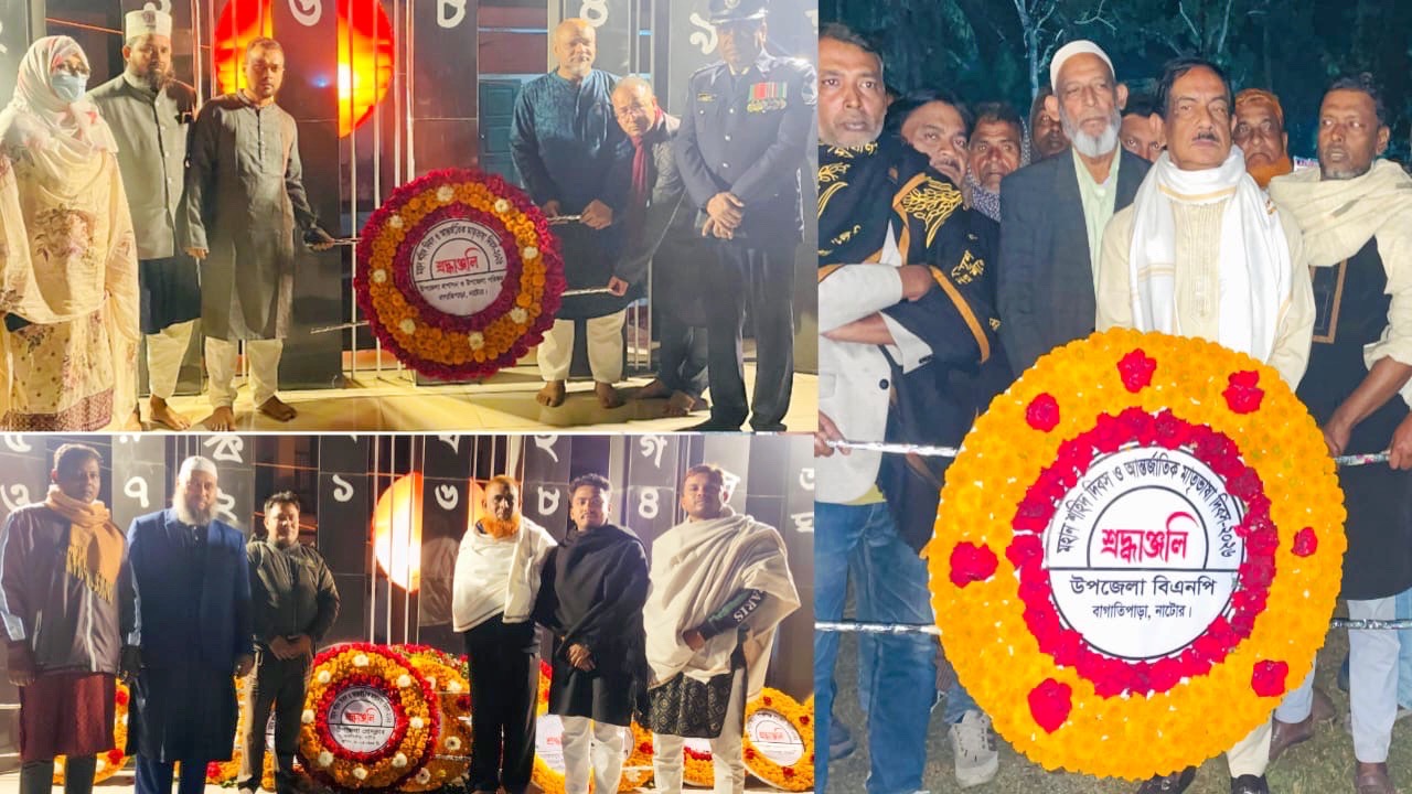 মহান শহীদ দিবস ও আন্তর্জাতিক মাতৃভাষা দিবস উপলক্ষে নাটোরের বাগাতিপাড়ার কেন্দ্রীয় শহীদ মিনারে পুষ্পস্তবক অর্পণ করা হয়েছে।