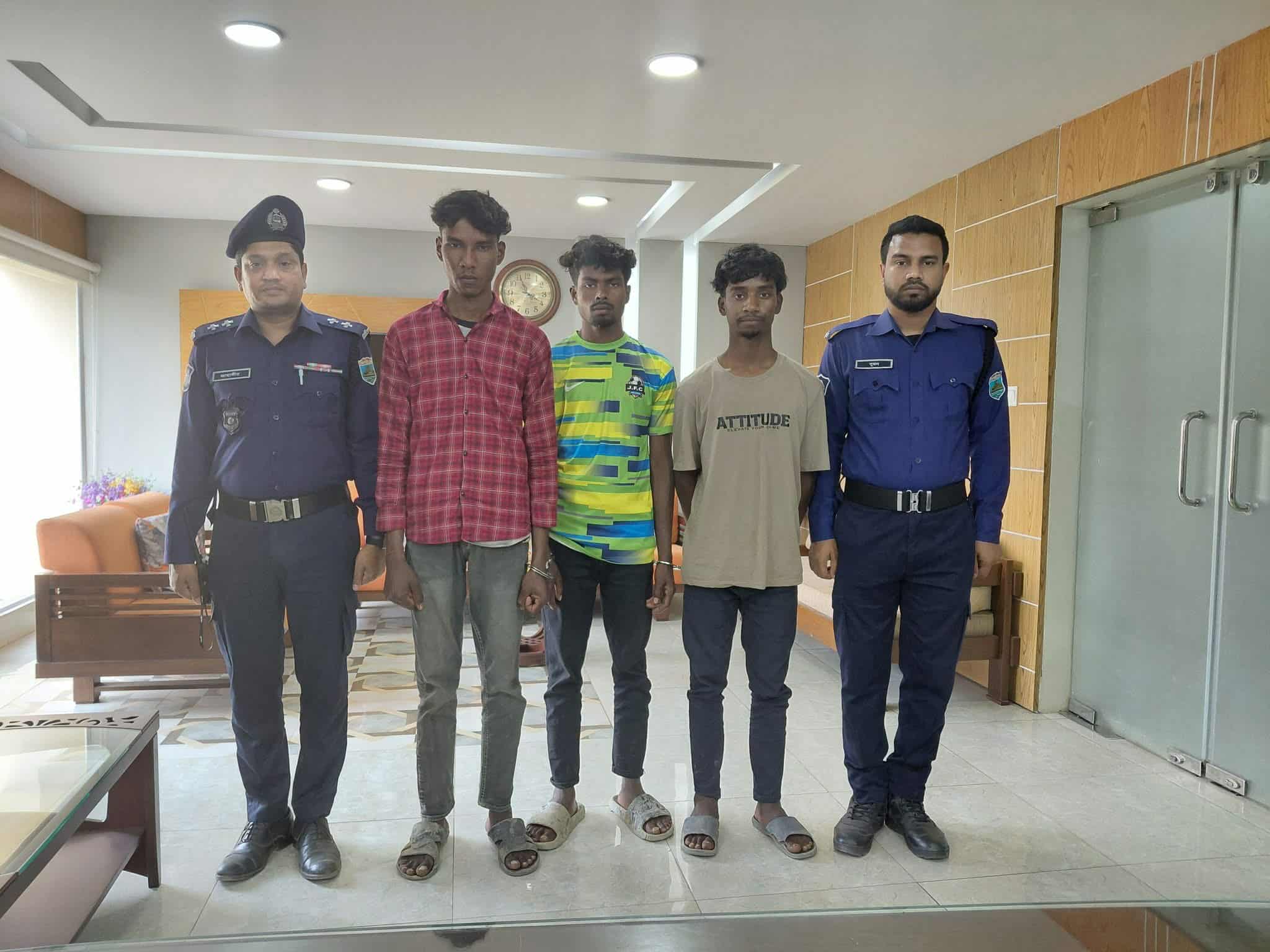পুলিশ সূত্রে জানা গেছে, নওগাঁ জেলার নিয়ামতপুর থানায় মামলা নং-৫, তারিখ ২২/০২/২০২৬ ইং, জিআর নং-২২, ধারা ২০০০ সালের নারী ও শিশু নির্যাতন দমন আইন এর ৯(৩) অনুযায়ী দায়ের করা মামলায় এজাহারনামীয় আসামি উপজেলার ভাবিচা (জাবরিপাড়া) এলাকার লথিরাম সরেন এর ছেলে অনুপ (২০), খুদিরাম হাসদা এর ছেলে রঞ্জন হাসদা (১৯) এবং ঈশ্বর সরেন এর ছেলে প্রশান্ত সরেন (১৯) কে গ্রেপ্তার করা হয়েছে।