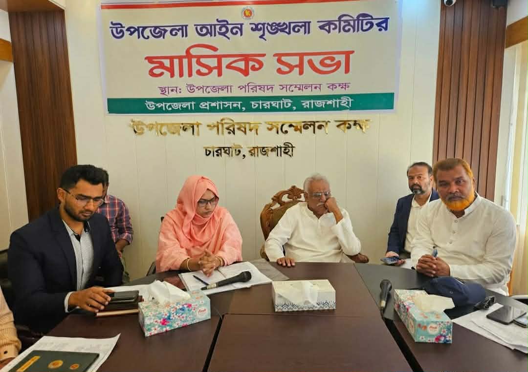 রাজশাহীর চারঘাট উপজেলা প্রশাসনের আয়োজনে আইনশৃংঙ্খলা কমিটির মাসিক সভা অনুষ্ঠিত হয়েছে।