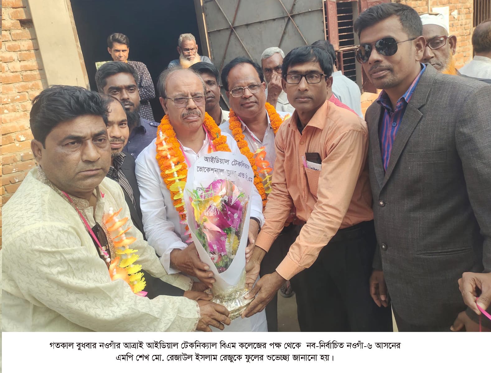 নওগাঁ-৬(আত্রাই- রাণীনগর) আসনের সংসদ সদস্য শেখ মো. রেজাউল ইসলাম রেজুকে ফুলের তোড়া দিয়ে শুভেচ্ছা জানিয়েছেন আইডিয়াল টেকনিক্যাল ভোকেশনাল স্কুল এন্ড বিএম কলেজের শিক্ষক মন্ডলী। গতকাল বুধবার আত্রাই উপজেলা বিএনপির দলীয় কার্যালয়ে এমপি রেজাউল ইসলাম রেজুকে কলেজ অধ্যক্ষ মমিনুল হক সবুজসহ কলেজের শিক্ষকবৃন্দ এই শুভেচ্ছা জানান।