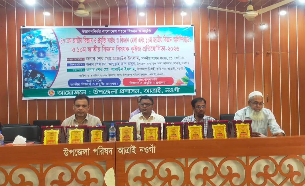 ‘উদ্ভাবননির্ভর বাংলাদেশ গঠনে বিজ্ঞান ও প্রযুক্তি’ এই প্রতিপাদ্যকে সামনে রেখে নওগাঁর আত্রাইয়ে অত্যন্ত উৎসাহ-উদ্দীপনার মধ্য দিয়ে ৪৭তম জাতীয় বিজ্ঞান ও প্রযুক্তি সপ্তাহ এবং বিজ্ঞান মেলা ২০২৬ অনুষ্ঠিত হয়েছে।