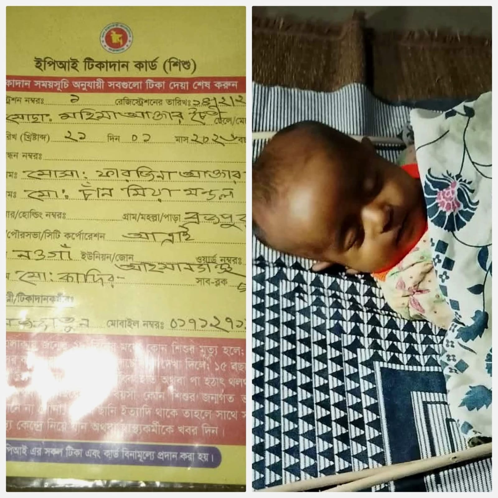 আত্রাইয়ে টিকা দেওয়ার একদিন পর ৩ মাসের শিশুর মৃত্যু