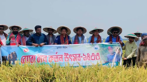 চলনবিলে বোরো ধান কাটা উৎসবের উদ্বোধন