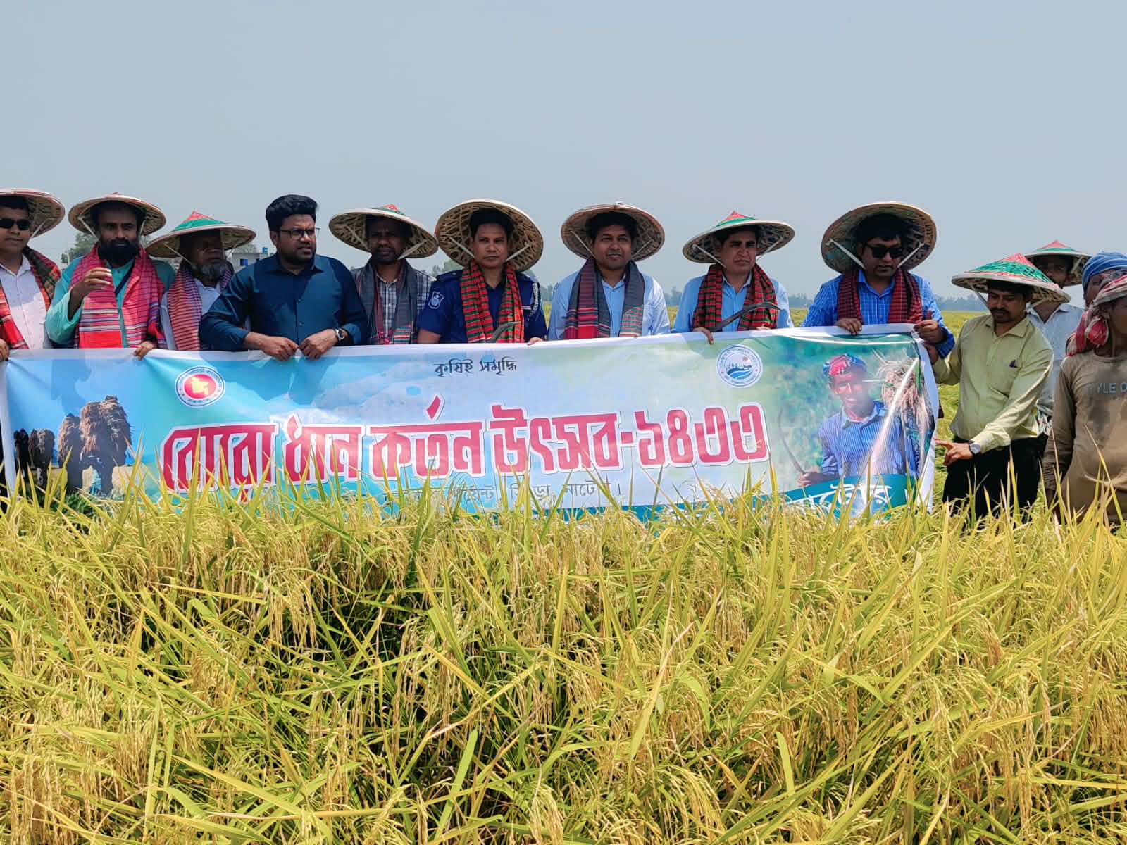 নাটোরের সিংড়া চলনবিল এলাকায় বোরো ধান কাটা উৎসবের উদ্বোধন করা হয়েছে।
