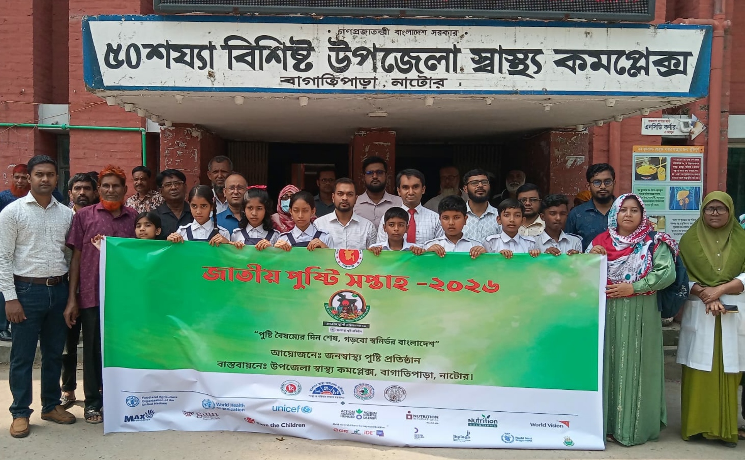 “পুষ্টি বৈষম্যের দিন শেষ—গড়বো স্বনির্ভর বাংলাদেশ” প্রতিপাদ্যকে সামনে রেখে নাটোরের বাগাতিপাড়ায় সপ্তাহব্যাপী জাতীয় পুষ্টি সপ্তাহের কার্যক্রম শুরু হয়েছে।