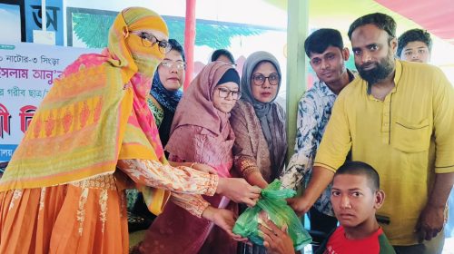 নাটোরের সিংড়ায় পথচারী ও শ্রমজীবী মানুষের মাঝে ঈদ সামগ্রী বিতরণ করা হয়েছে। শনিবার (১৪ মার্চ) দুপুরে সিংড়া বাসস্ট্যান্ড এলাকায় নিম্ন আয়ের সাধারণ মানুষ, অটোচালক, ভ্যানচালকসহ পথচারীদের মাঝে এসব ঈদ সামগ্রী…