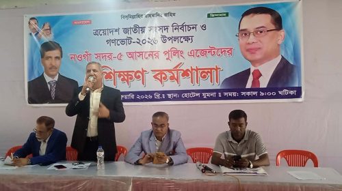 ত্রয়োদশ জাতীয় সংসদ নির্বাচন ও গণভোটকে সামনে রেখে নওগাঁ সদর-৫ আসনের পুলিং এজেন্টদের জন্য এক প্রশিক্ষণ কর্মশালা অনুষ্ঠিত হয়েছে। সোমবার (৯ ফেব্রুয়ারি ২০২৬) দুপুরে নওগাঁ শহরের হোটেল যমুনা কমিউনিটি সেন্টারে…