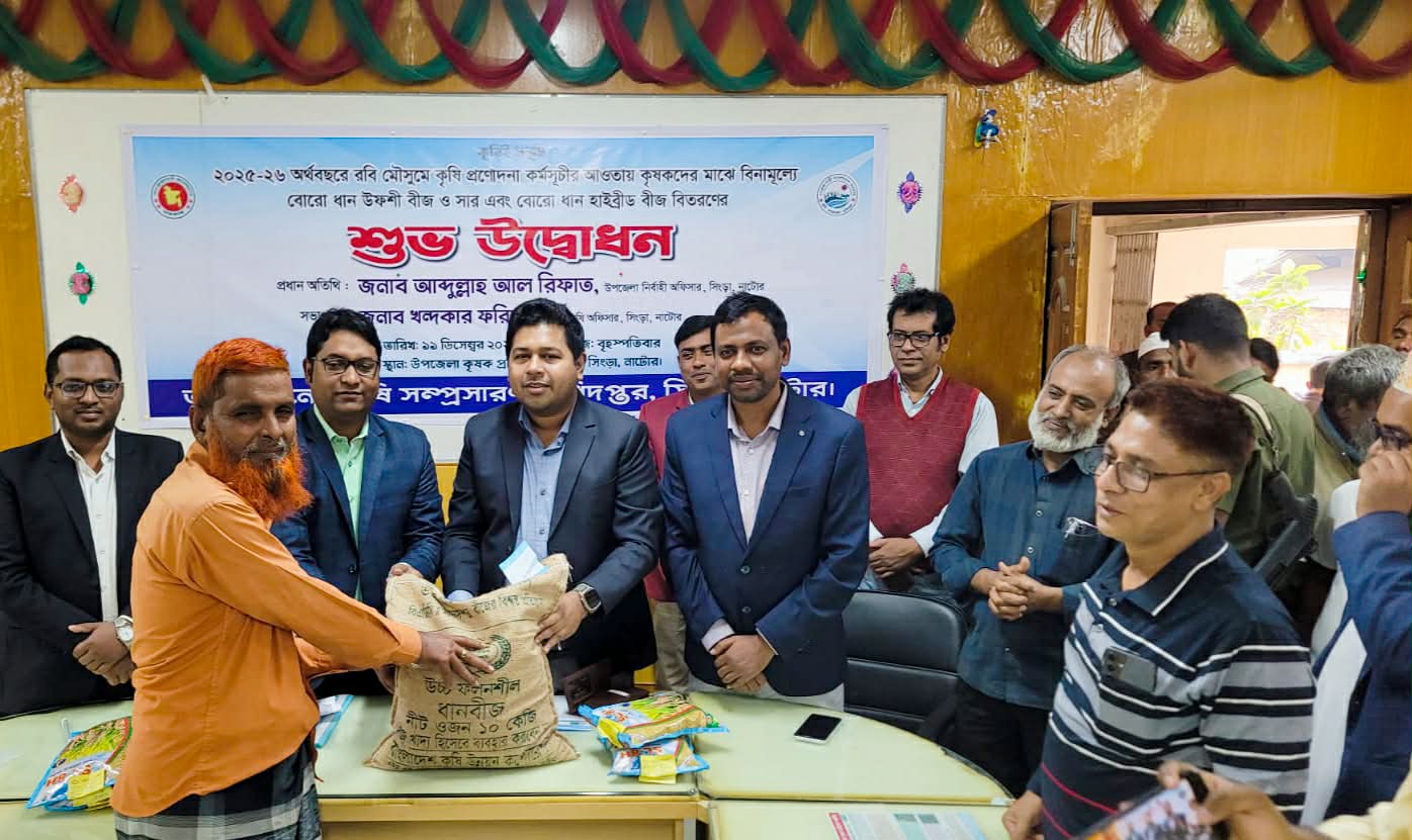 সিংড়ায় কৃষকদের মাঝে বিনামূল্যে উফসি বীজ ও সার বিতরণ